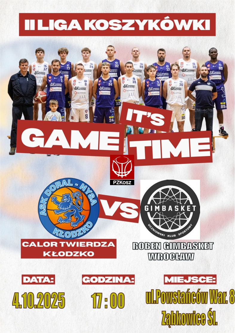 02.10.2025 15:23 W sobotę 4.10.2025 przed naszą drużyną kolejne wyzwanie. Tym razem zmierzymy się w Ząbkowicach z beniaminkiem II ligi Röben Gimbasket Wrocław.