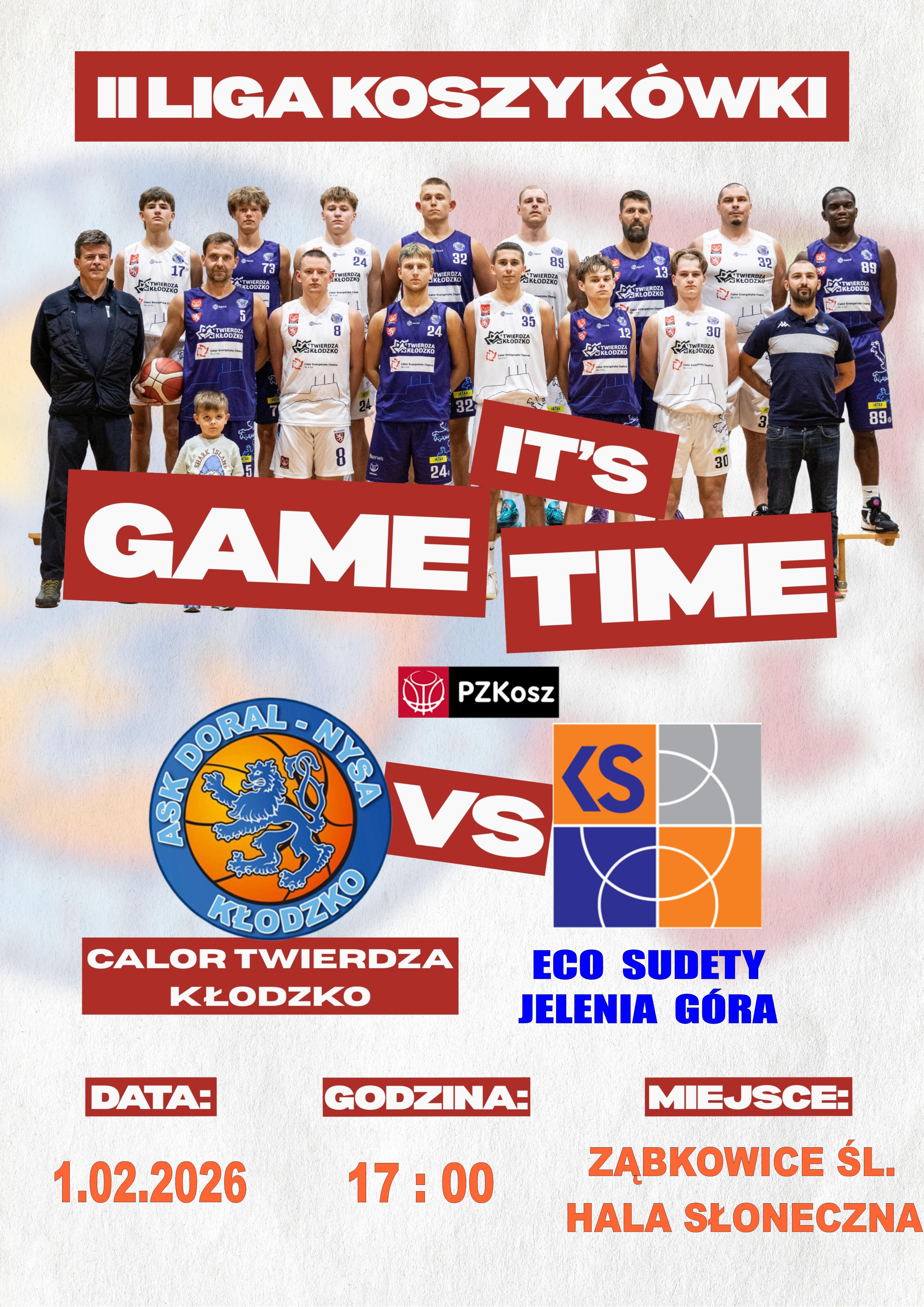 28.01.2026 14:50 Już 1 lutego 2026 roku (niedziela) kibiców koszykówki czeka ligowe starcie U&R Calor Twierdza Kłodzko z ECO Sudetami Jelenia Góra. Początek spotkania zaplanowano na godzinę 17:00, a mecz rozegrany zostanie w hali w Ząbkowicach Śląskich, na co dzień będącej miejscem treningów zespołu Caloru.
